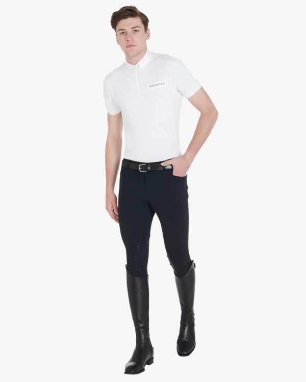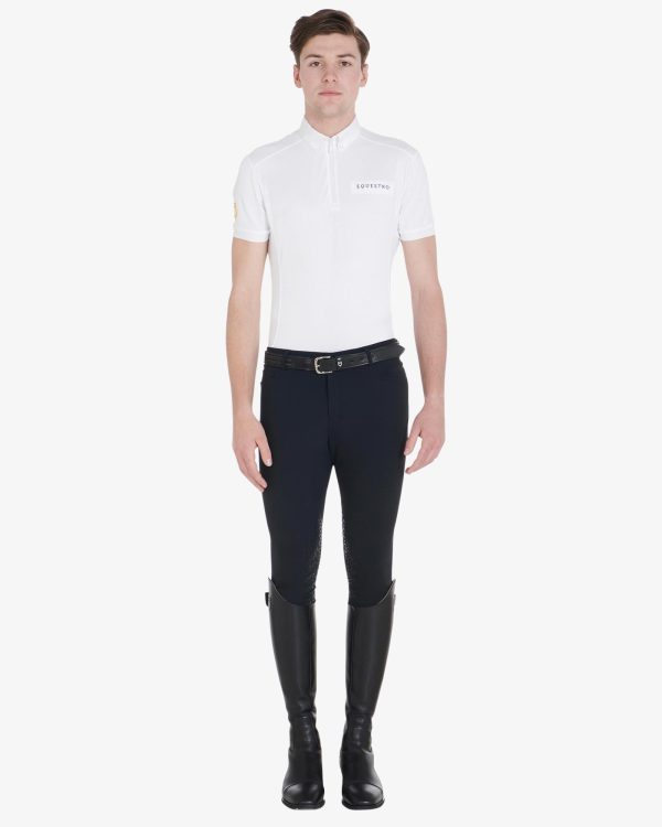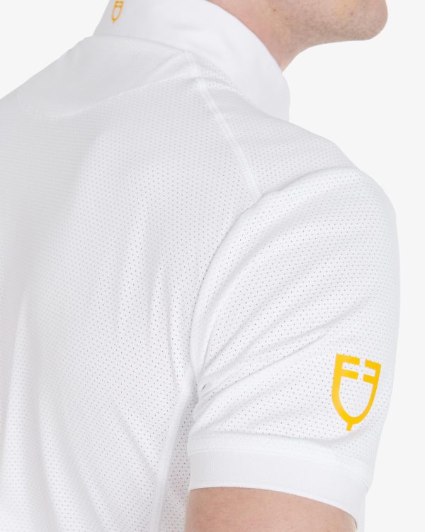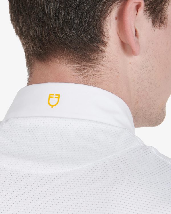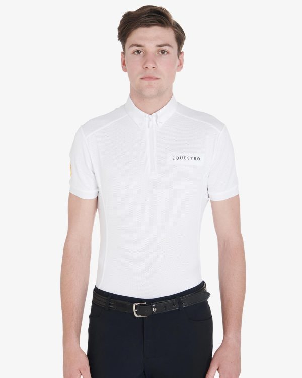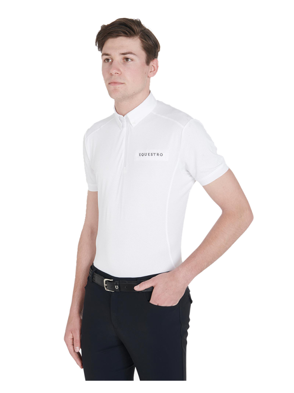 Men’s slim fit polo shirt in perforated mesh technical fabric and half-sleeve stretch for optimal comfort and maximum practicality.