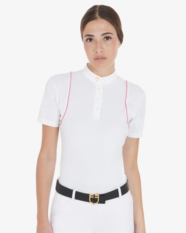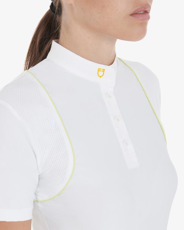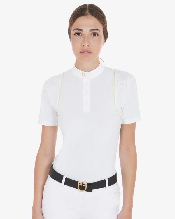 Women’s slim fit short-sleeved competition polo shirt with buttons. Perfect for any competition, thanks to its technical materials.