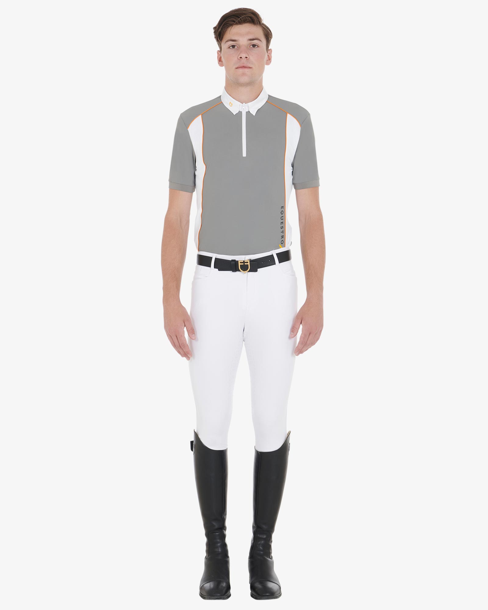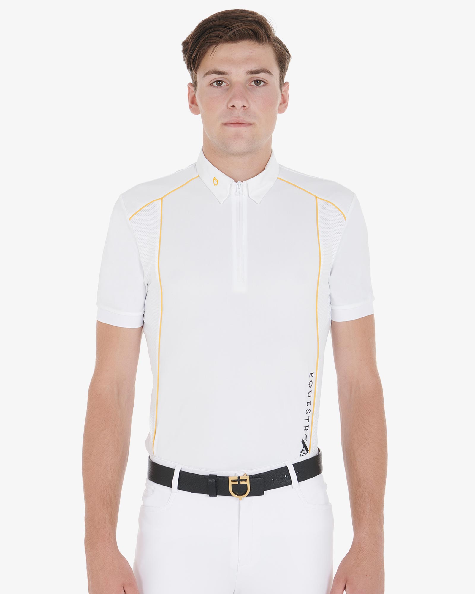 Men’s slim fit short-sleeved competition polo shirt in breathable and stretch technical fabric.