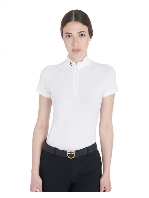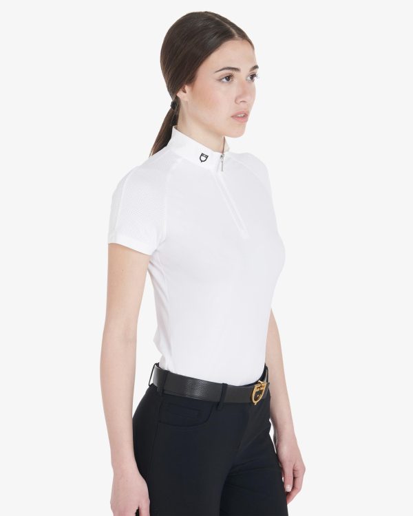 Women’s Taline slim fit competition polo shirt in stretch technical fabric and micro-perforated fabric on the sleeve that guarantees maximum comfort and perfect fit.